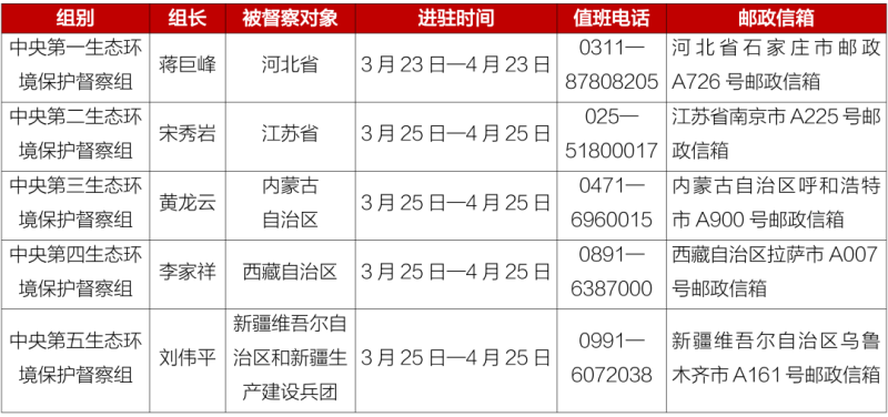 第二輪第六批中央生態(tài)環(huán)境保護(hù)督察進(jìn)駐一覽表